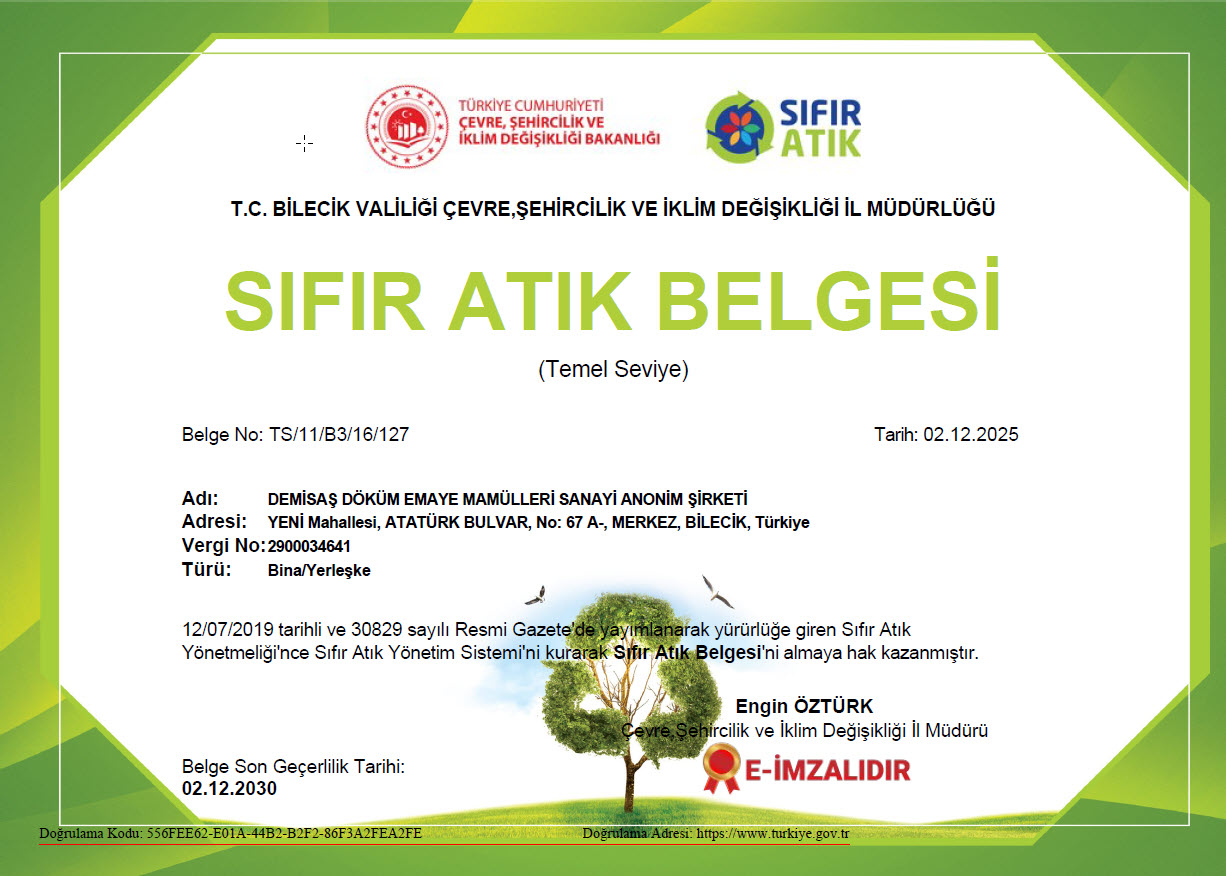Çevre Yönetim sistemi hem fabrika hem de merkez ofis faaliyetlerini kapsamaktadır.